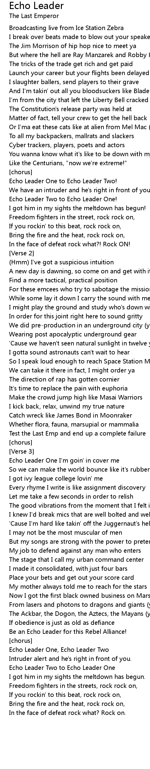 Echo Leader One, Echo Leader Two |