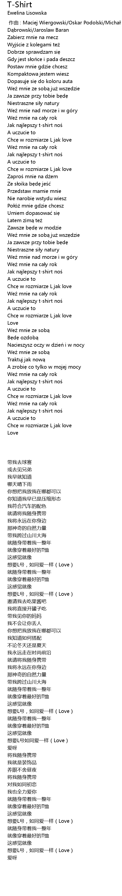 | [02:00.33] | Chc w rozmiarze L jak love |