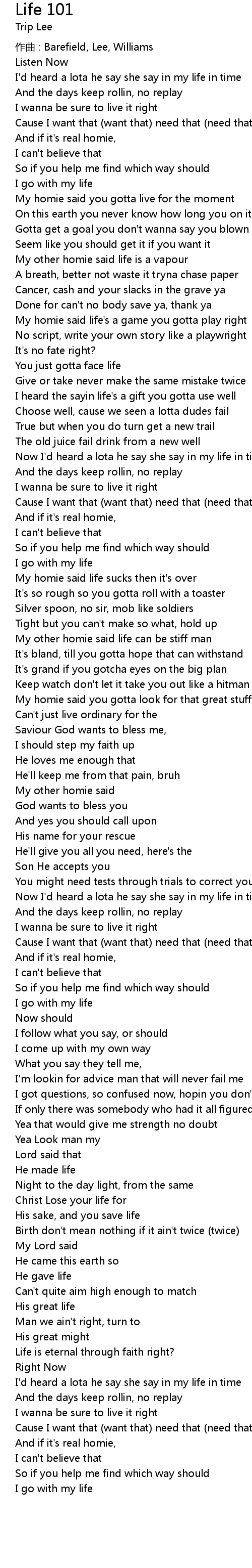 | 歌曲 | Life 101 |