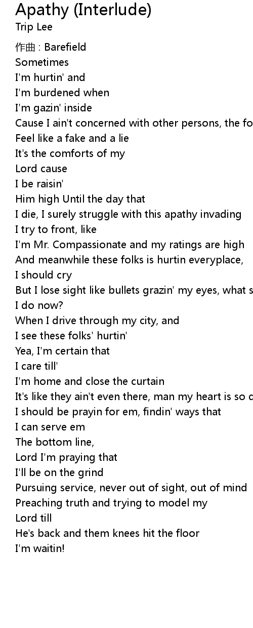 | 歌曲 | Apathy (Interlude) |