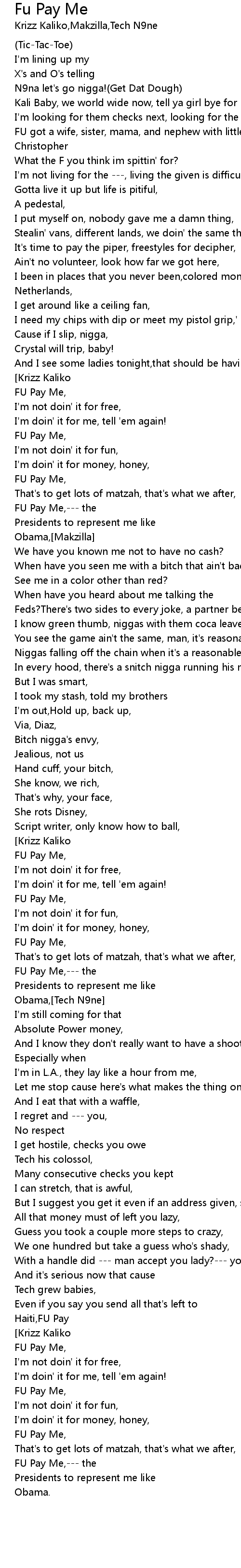 FU Pay Me![Chorus][Krizz Kaliko] |
