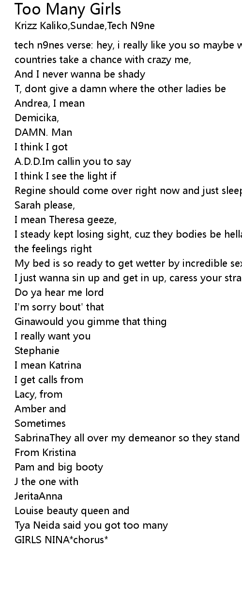 歌曲 Too Many Girls