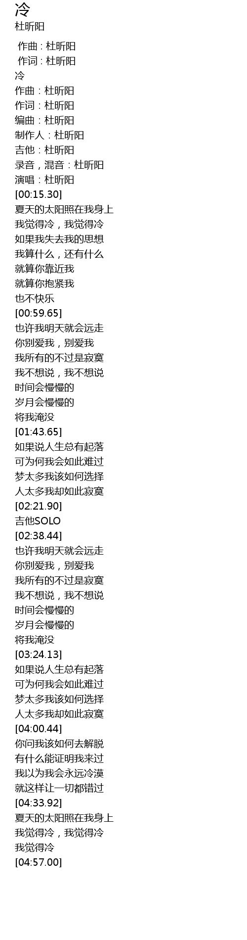 | [04:43.83] | 我觉得冷,我觉得冷 |