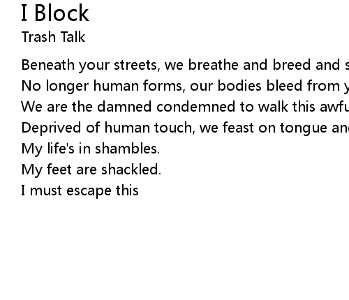 | Beneath your streets, we breathe and breed and sleep and eat defeat. | |