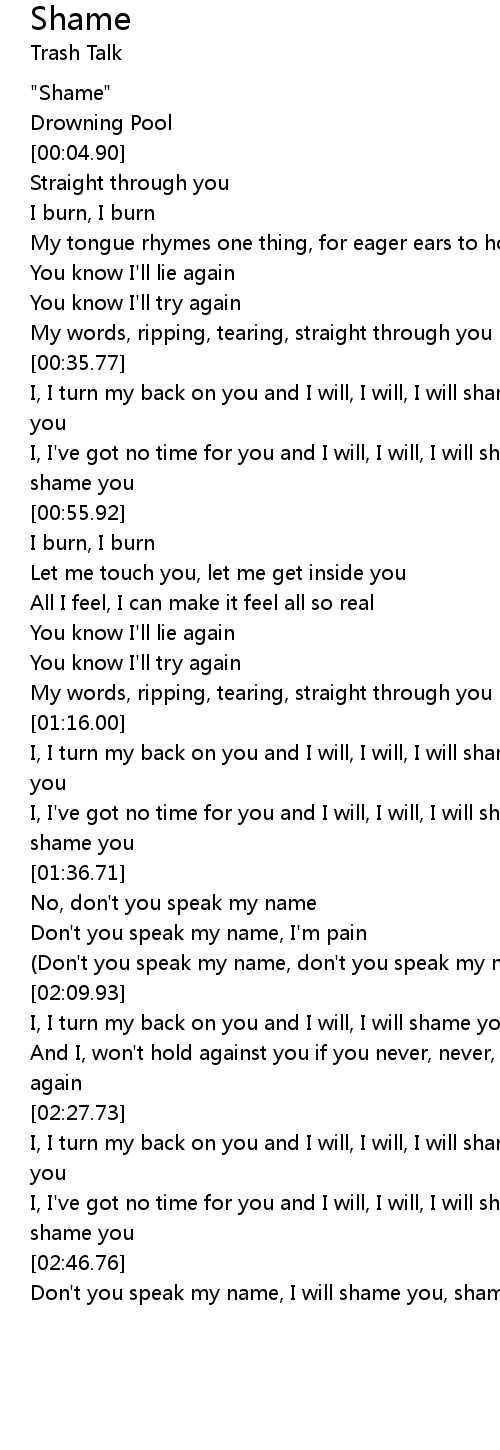 I, I turn my back on you and I will, I will, I will shame you, shame you |
