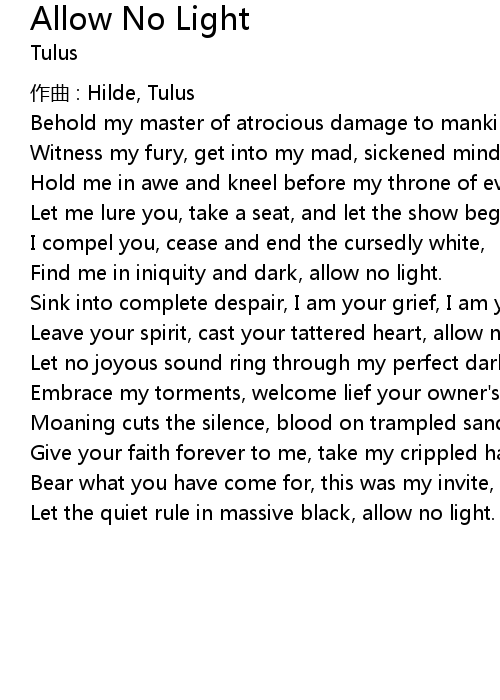 | Leave your spirit, cast your tattered heart, allow no light. | |