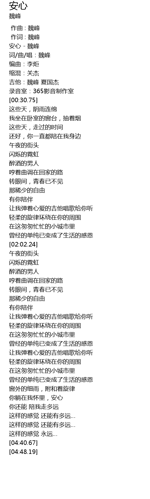 | [00:12.35] | 词/曲/唱:魏峰 |