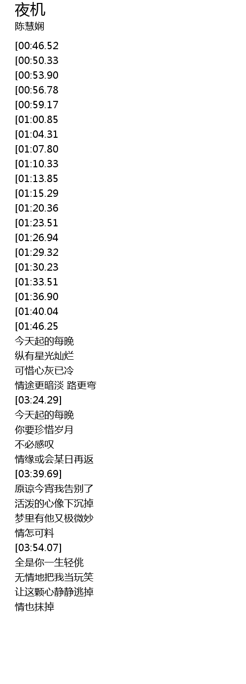 | [03:20.69] | 情途更暗淡 路更弯 |