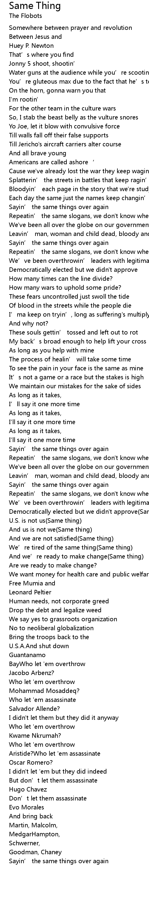 | We’ve been overthrowin’ leaders with legitimate views | |