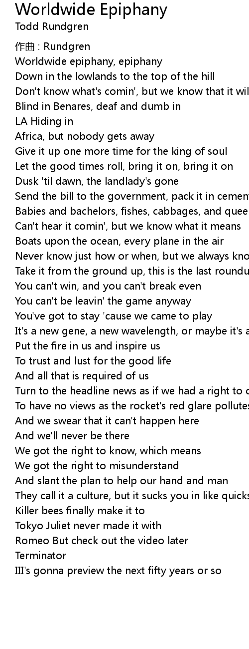 | 歌曲 | Worldwide Epiphany |