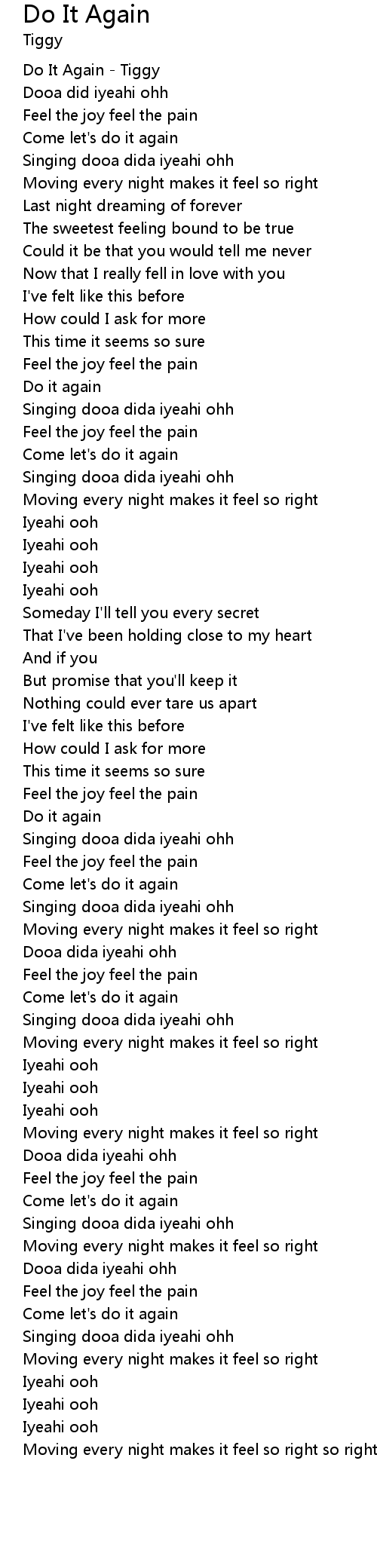 | [00:00.250] | Do It Again - Tiggy |