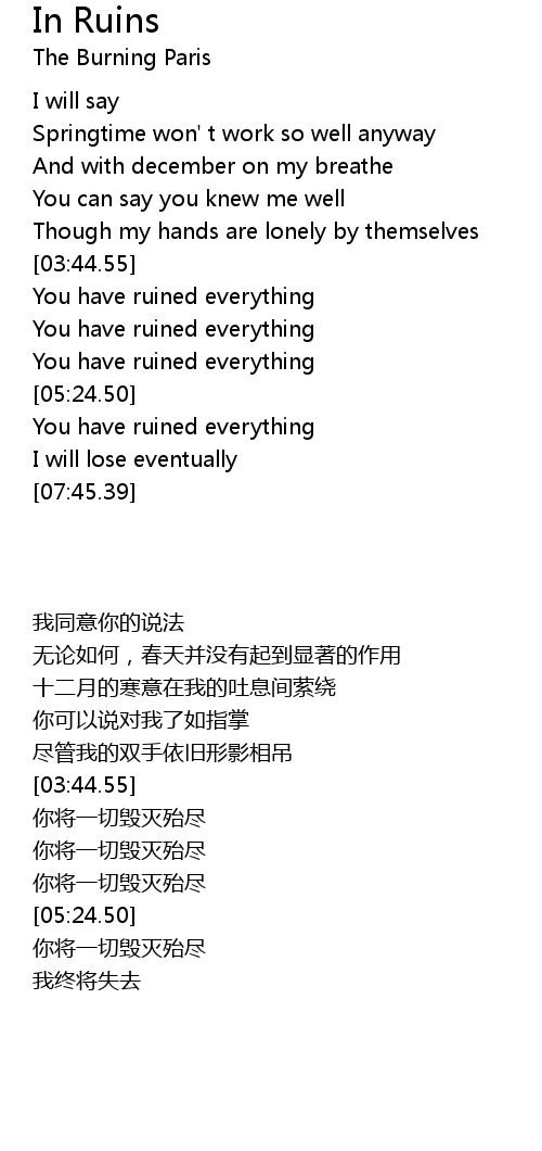 | [04:33.72] | 你将一切毁灭殆尽 |