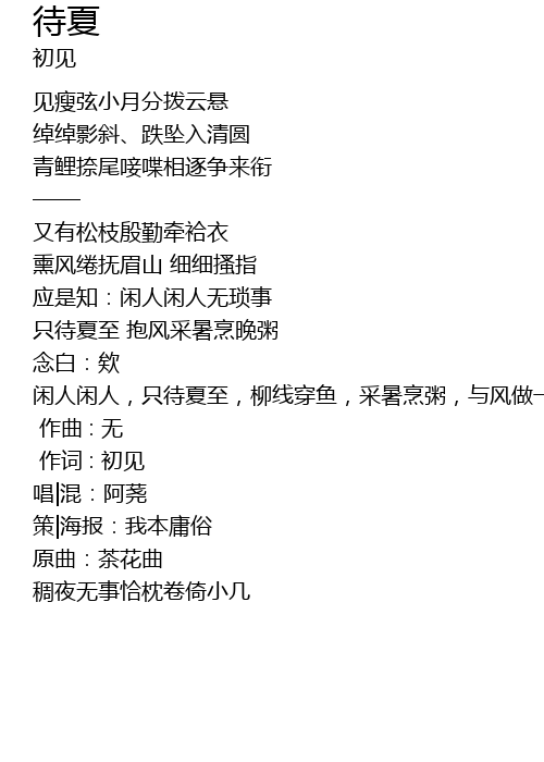 | [0:41] | 只待夏至 抱风采暑烹晚粥 |