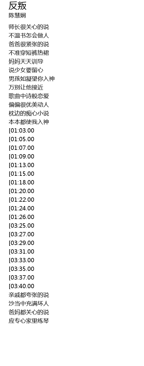 | [03:55.00][03:37.00][01:43.00] | 反叛 想玩玩 |