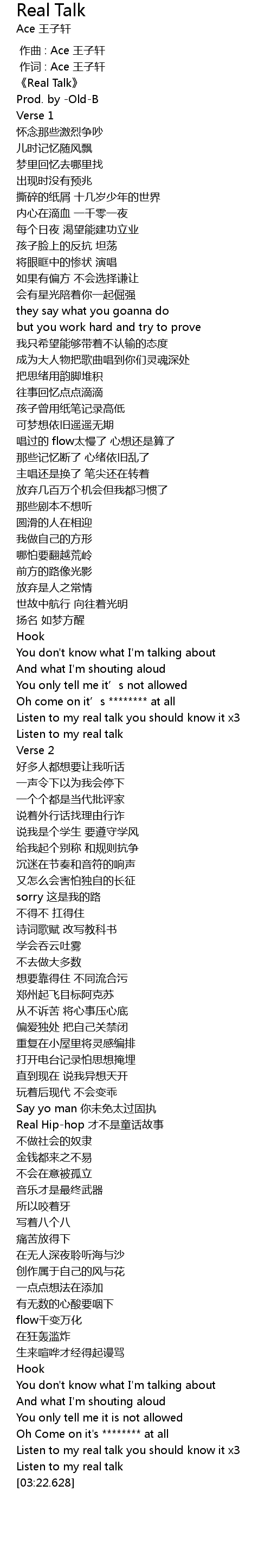 | [00:01.496] | 《Real Talk》 |