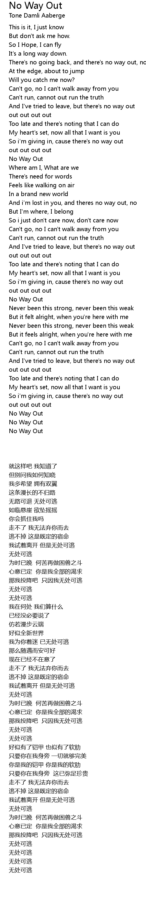 There's no going back, and there's no way out, no |