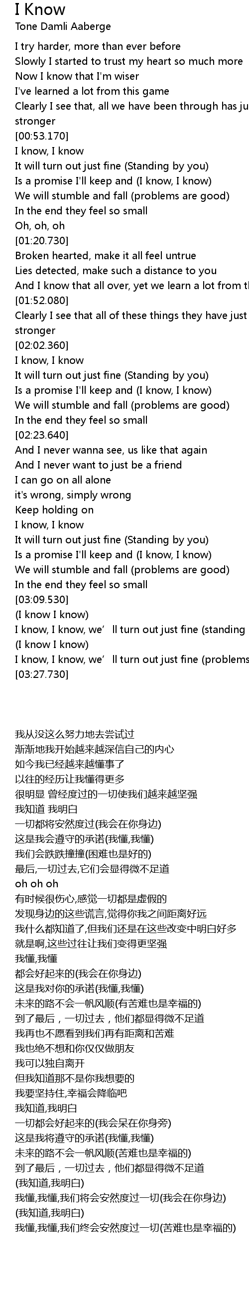 | [03:11.450] | I know, I know, we' ll turn out just fine standing by you |