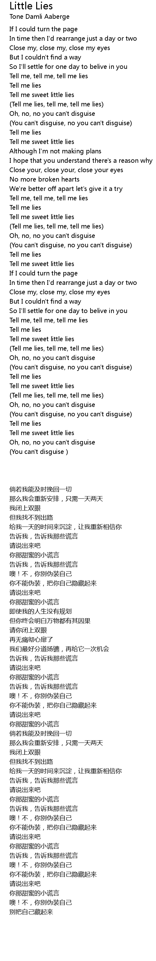 | [02:50.000] | Tell me lies |