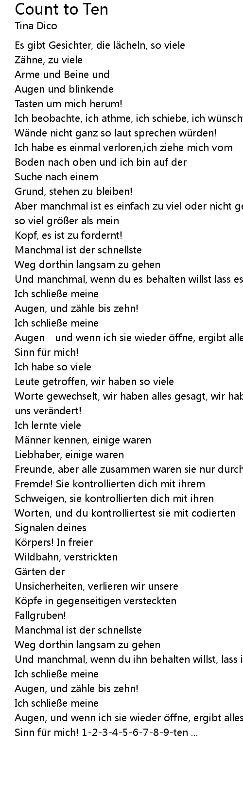 | Sinn für mich! 1-2-3-4-5-6-7-8-9-ten ... |