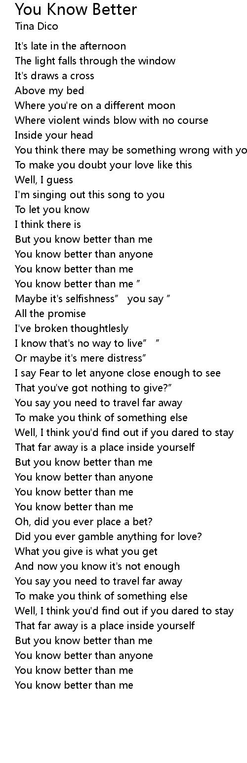 | 歌曲 | You Know Better |