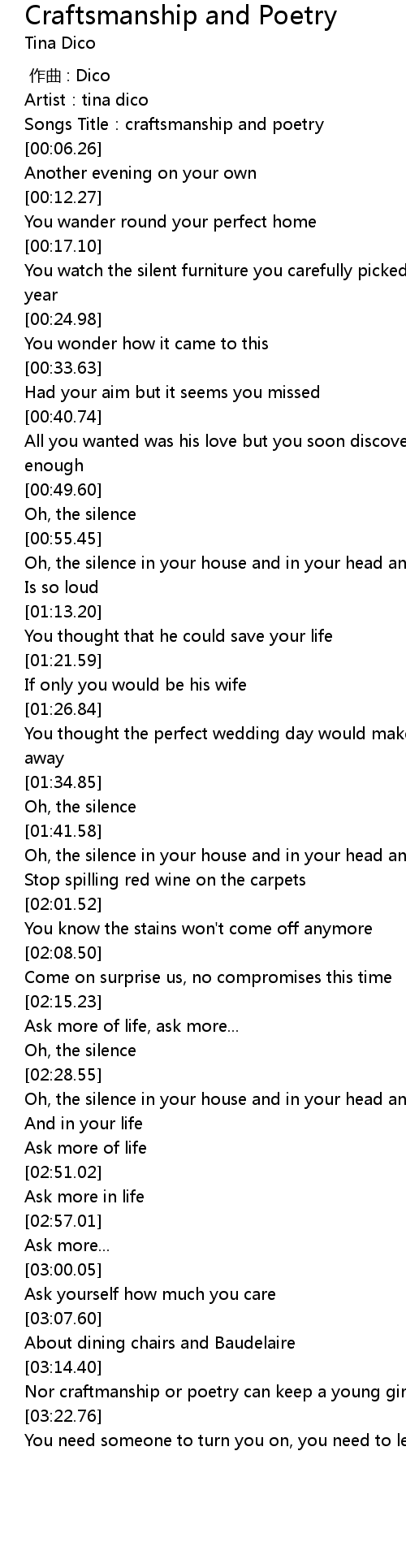 | [00:04.45] | Songs Title:craftsmanship and poetry |
