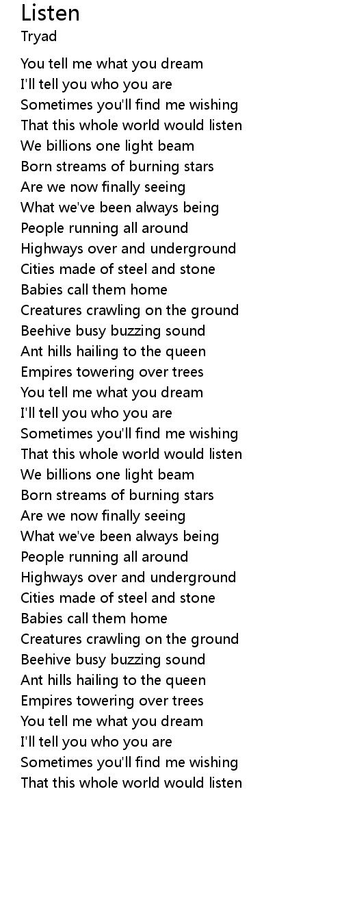 That this whole world would listen |