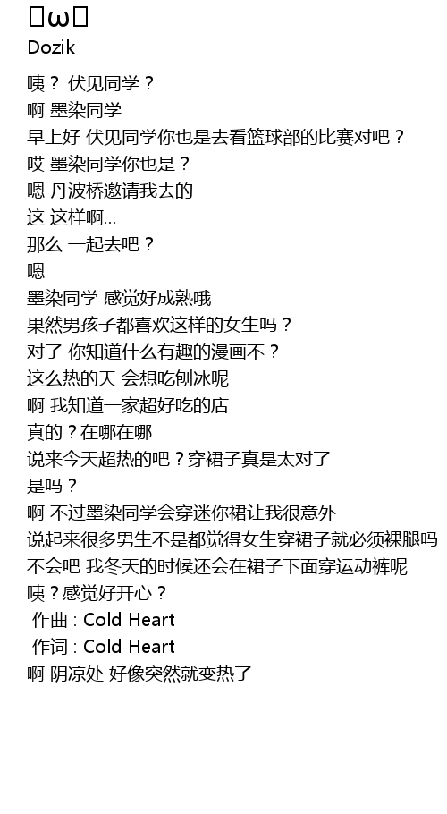 | [00:00.370] | zuo ci : Cold Heart |