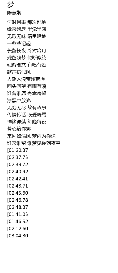 | [03:22.64][02:46.78][01:38.14] | 仍然仍愿 有你有梦 |