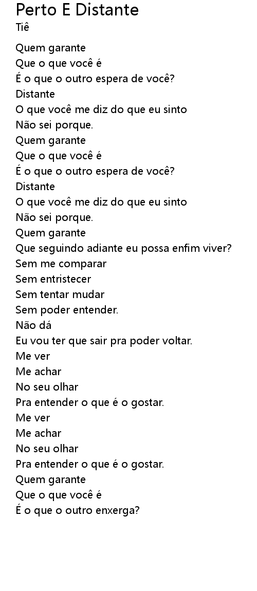 | 歌曲 | Perto E Distante |