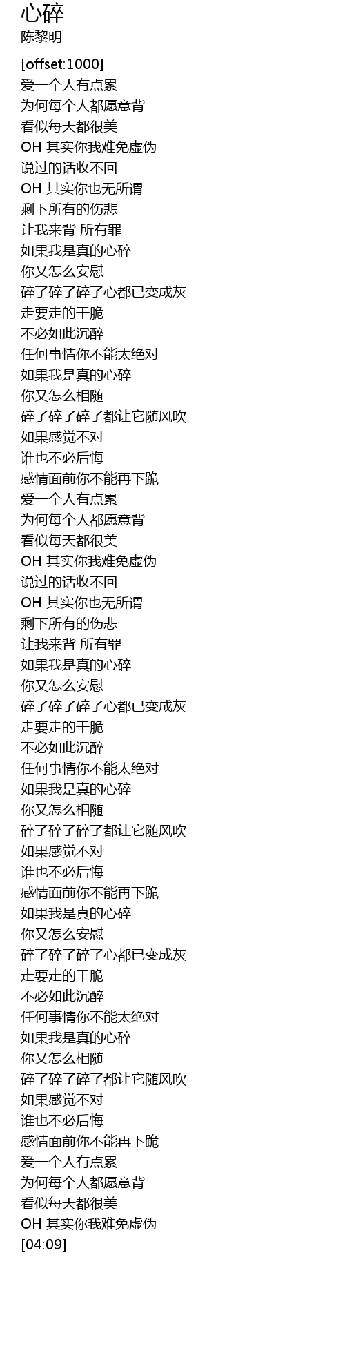 | [03:32] | 如果我是真的心碎 |