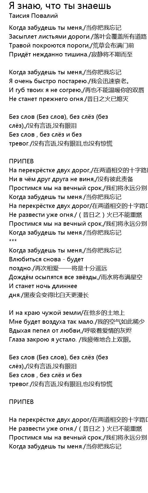 | Без слов (Без слов), без слёз (без слёз),/没有言语,没有眼泪 | |