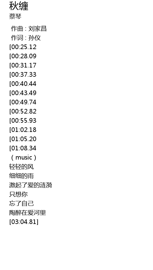 | [02:04.15][00:49.74] | 轻轻的风 |