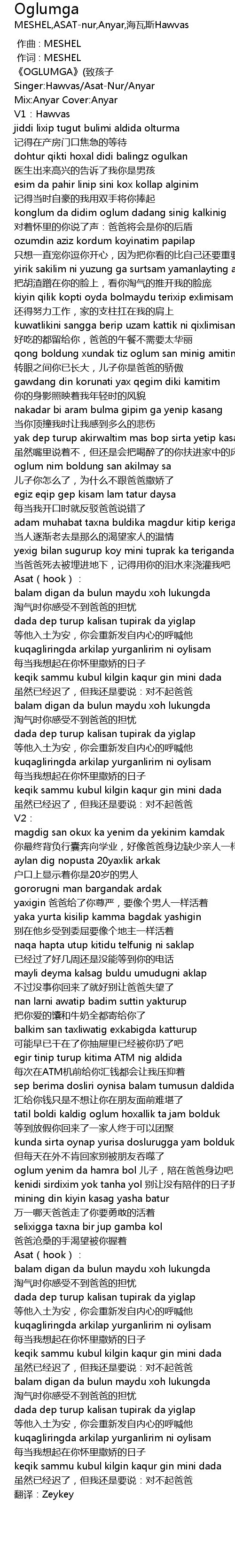 | [00:53.067] | oglum nim boldung san akilmay sa er zi ni zen me le, wei shi me bu gen ba ba sa jiao le |