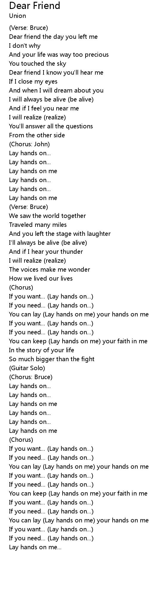 Lay hands on me |