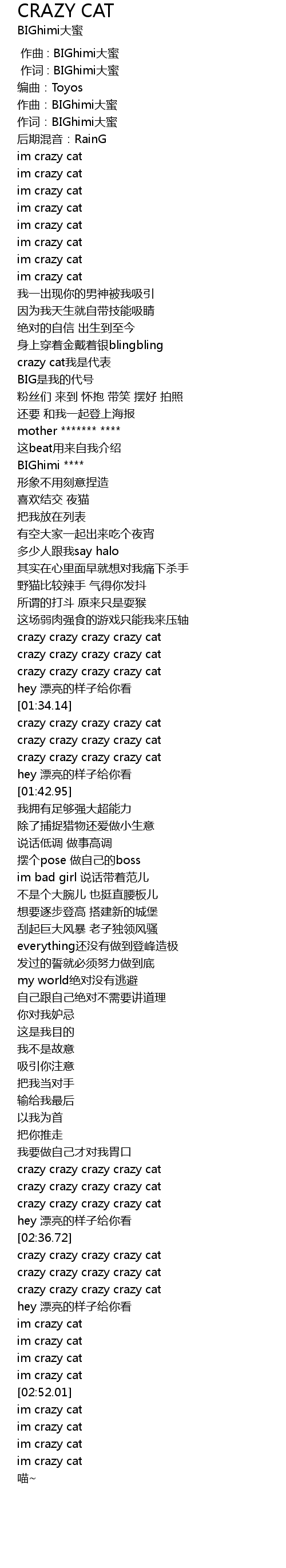 | [01:37.14] | crazy crazy crazy crazy cat |