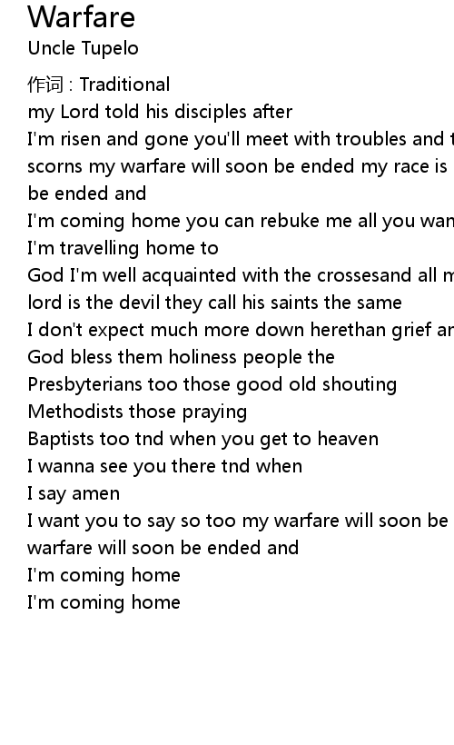 | I want you to say so too my warfare will soon be ended my race is almost run my warfare will soon be ended and | |