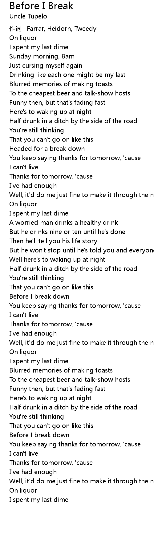 | Before I break down | |