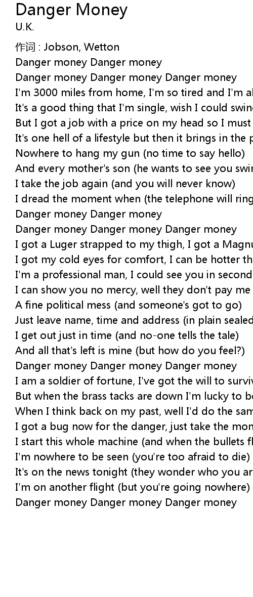 | 歌曲 | Danger Money |