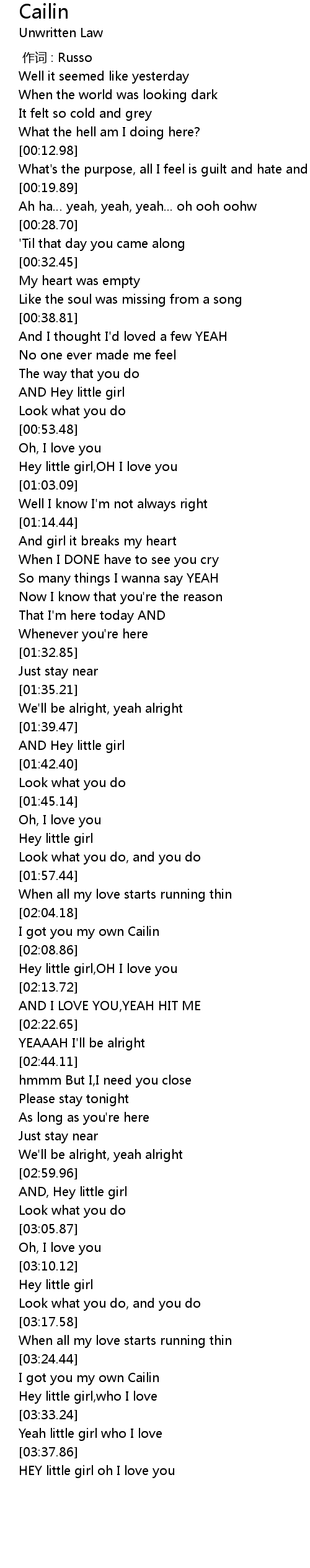 | [02:09.48] | Hey little girl, OH I love you |