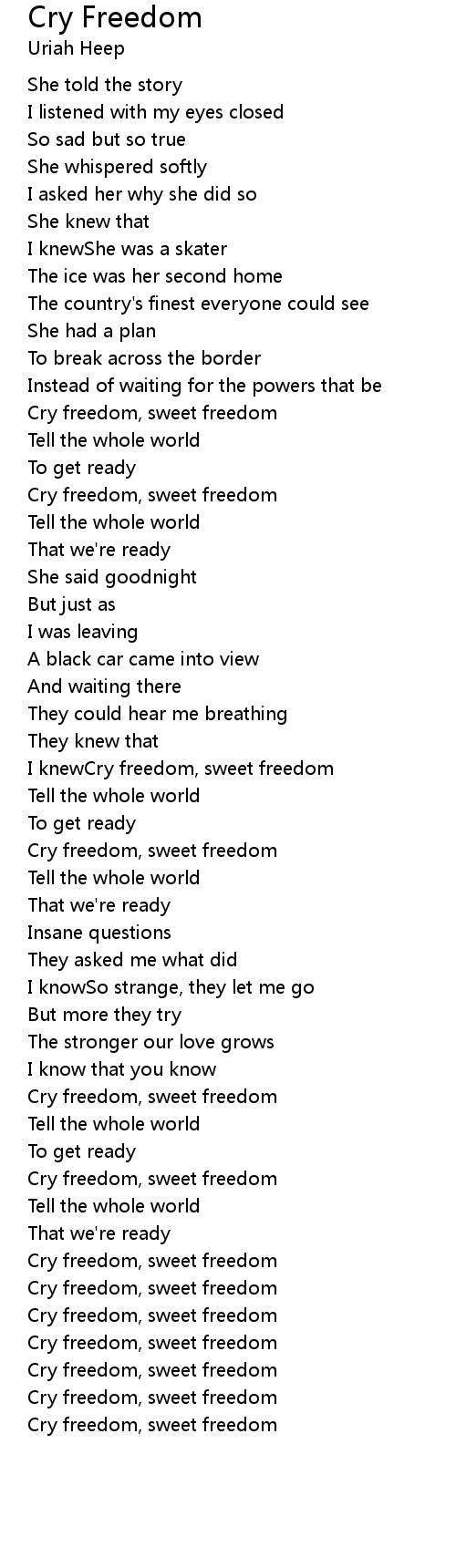 Cry freedom, sweet freedom |