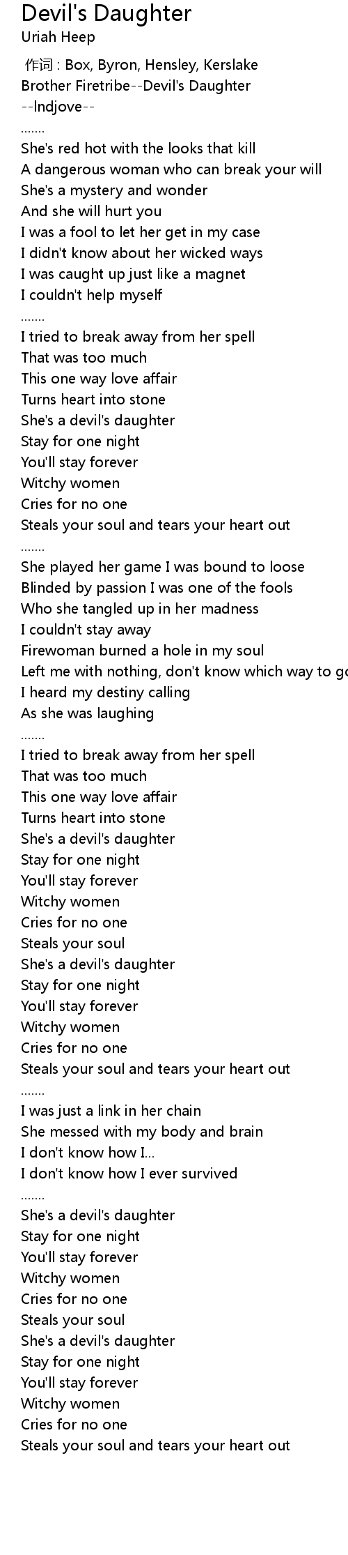 | [00:02.34] | Brother Firetribe--Devil's Daughter |