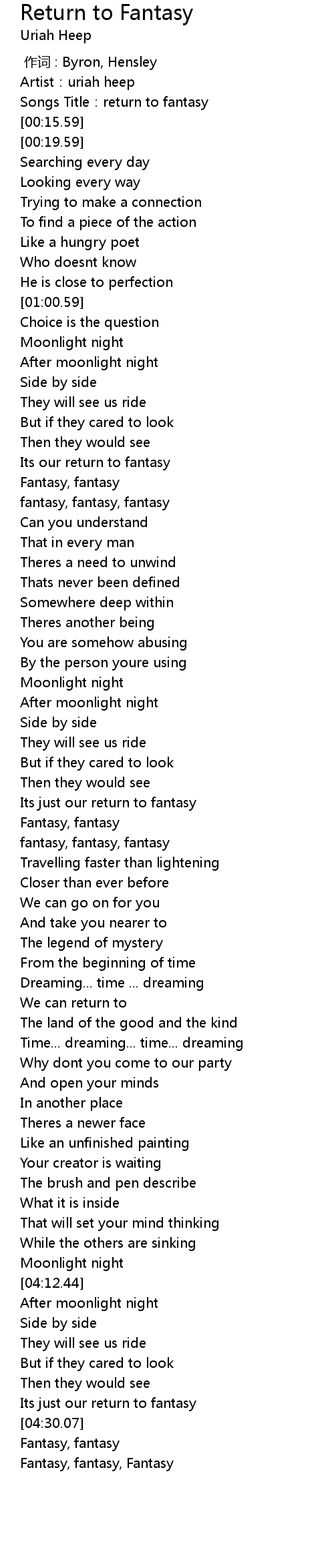 | [04:40.23] | Fantasy, fantasy, Fantasy |