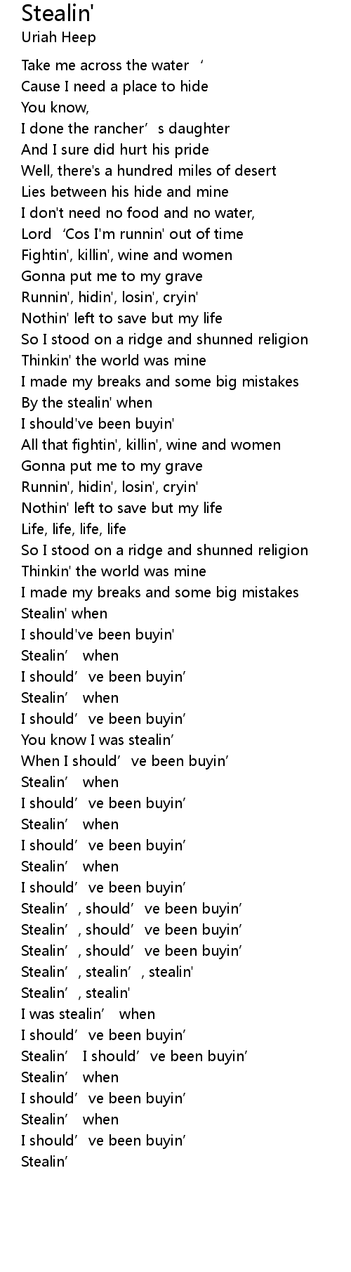 | 歌曲 | Stealin' |