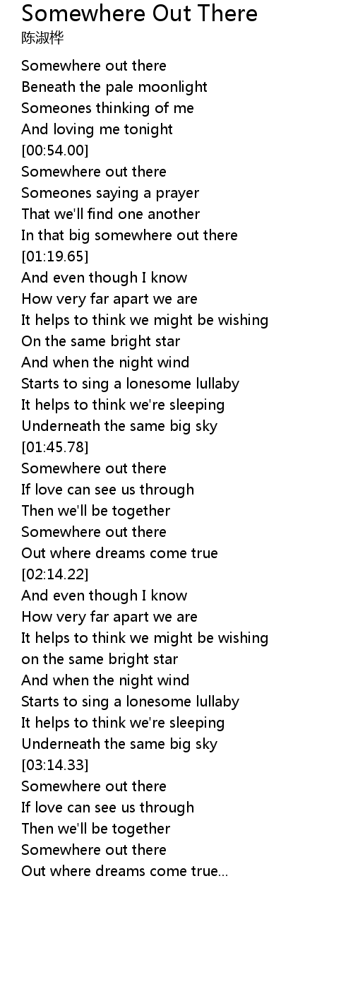 | [00:56.75] | Somewhere out there |