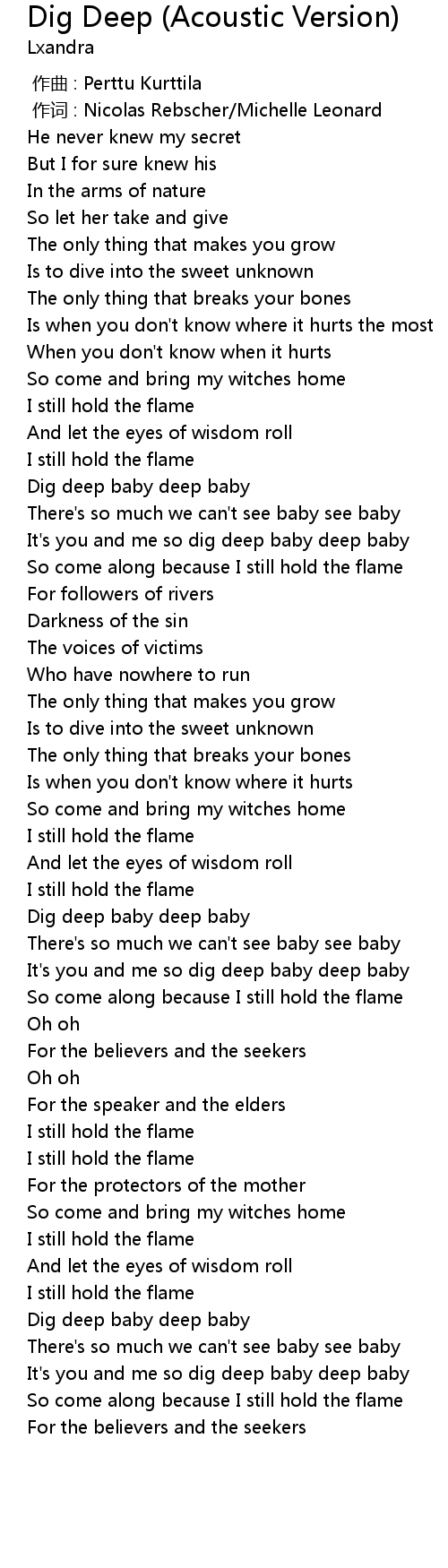 | [01:02.31] | Dig deep baby deep baby |