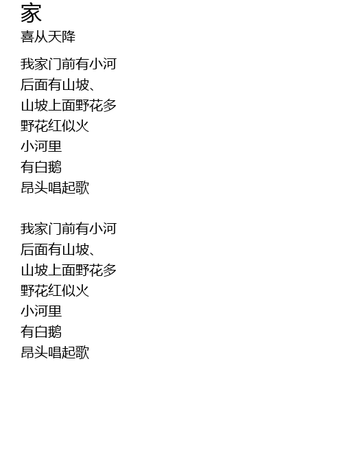 | wǒ jiā mén qián yǒu xiǎo hé | |