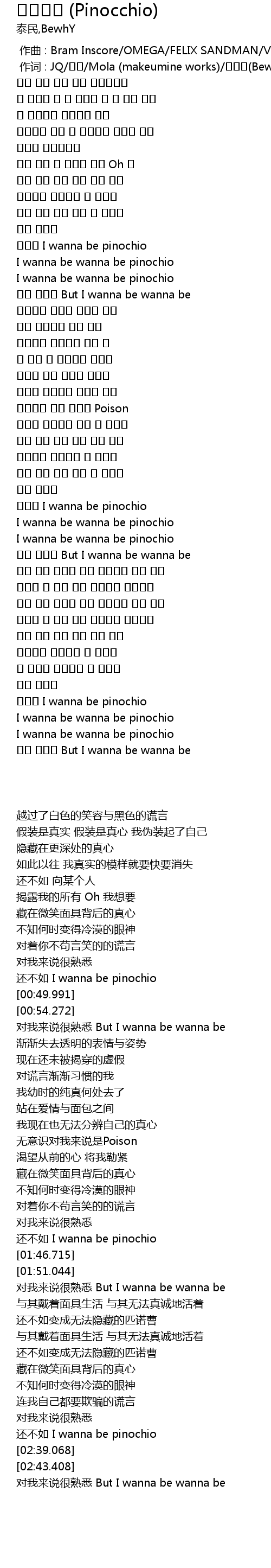 | [00:45.693] | 还不如 I wanna be pinochio |