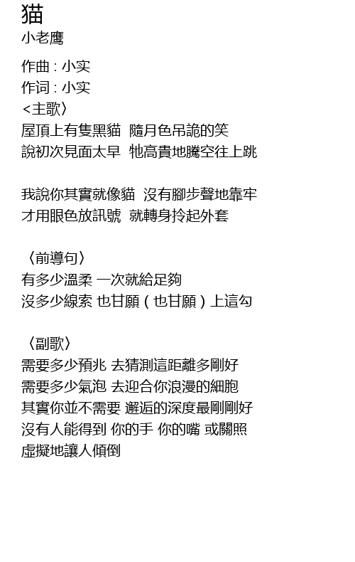 | 我說你其實就像貓 沒有腳步聲地靠牢 | |