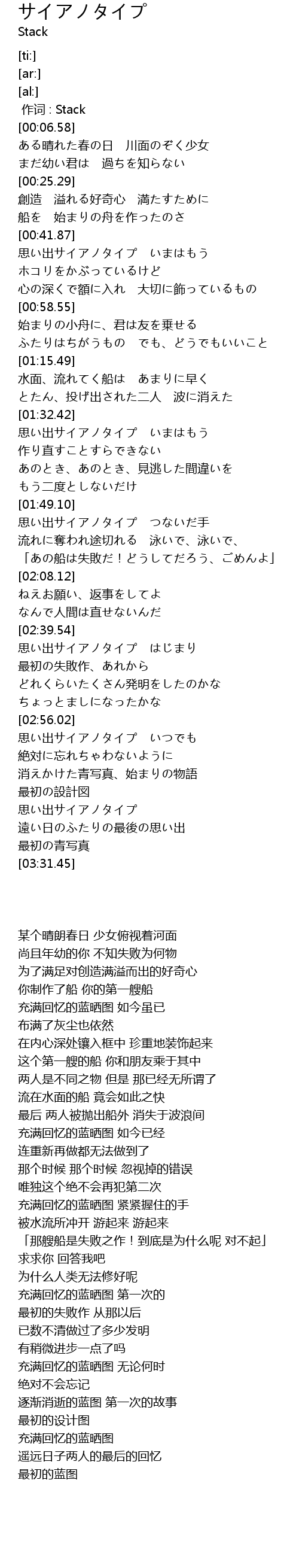| [02:39.60] | 思い出サイアノタイプ はじまり |