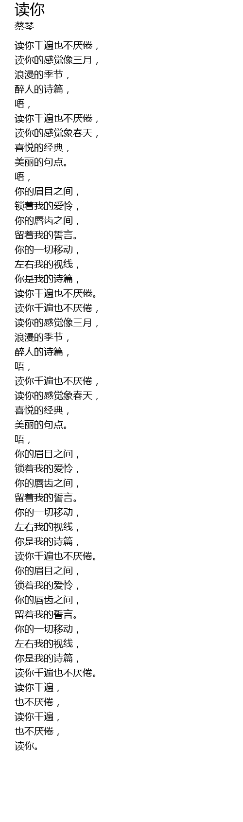 | [01:56.000] | 读你千遍也不厌倦, |